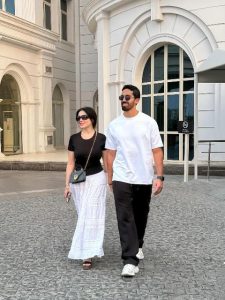في أول صور بشهر العسل .. أحمد تيمور ومي عز الدين يتألقان بإطلالة بسيطة وراقية