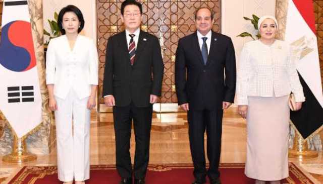 واستقبل السيد الرئيس عبد الفتاح السيسي والسيدة انتصار السيسي قرينة رئيس الجمهورية، اليوم، الرئيس “لي جاي ميونج” رئيس جمهورية كوريا والسيدة قرينته.