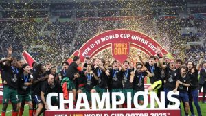 توج منتخب البرتغال للناشئين بلقب كأس العالم تحت 17 عاما بعد فوزه علي نظيره النمسا بهدف نظيف في المباراة النهائية التي أقيمت بملعب “خليفة الدولي” في العاصمة القطرية “الدوحة”، اليوم الخميس.