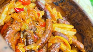 خطوات طريقة عمل طاجن سجق بالبطاطس