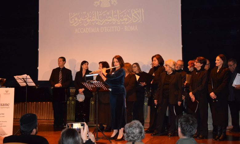 وشهدت الأمسية مفاجأة خاصة للجمهور، حيث قدّمت قائدة الكورال مقطوعة موسيقية غنائية بعنوان “سلام لكِ أم الدنيا”، في تحية رمزية للدور المصري الرائد وتجسيدًا لعمق العلاقات المصرية–الإيطالية عبر العصور. وقد شاركت الدكتورة رانيا يحيى، مديرة الأكاديمية، بالعزف على آلة الفلوت مع الكورال أثناء أداء هذه المقطوعة التي أهدتها المؤلفة إلى مصر احتفاءً بهذه المناسبة الثقافية الكبرى وتقديرًا للدور المصري الملهم، خاصة في أعقاب افتتاح المتحف المصري الكبير.