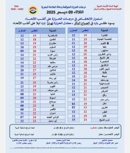 وتواصل مديريات التربية والتعليم عملها بشكل طبيعي، دون إعلان عن إجازات أو إجراءات استثنائية، مع التأكيد على متابعة حالة الطقس أولًا بأول تحسبًا لأي تطورات قد تستدعي التدخل.