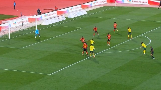 هدف جنوب إفريقيا جاء من هجمة منظمة من لاعبي جنوب إفريقيا بمجموعة من التمريرات المتتالية أنهاها أسوين أبوليس بتسديدة أرضية من داخل منطقة الجزاء سكنت الشباك في الزاوية اليمنى للمرمى.