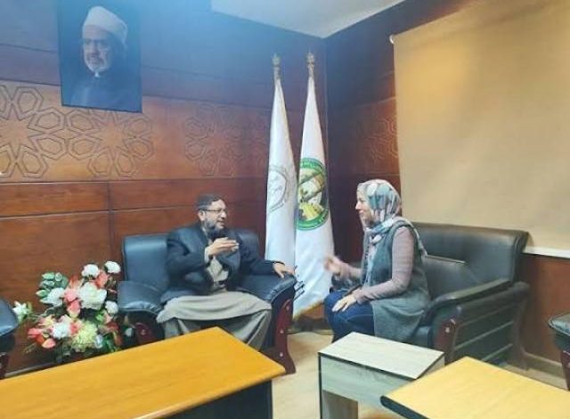 وأجري الحوار على هامش فعاليات الدورة التدريبية لأئمة باكستان، التي عقدتها المنظمة العالمية لخريجي الأزهر الشريف، بالتعاون مع أكاديمية الأزهر العالمية، في إطار دعم وتأهيل العلماء والدعاة، ونشر المنهج الأزهري الوسطي حول العالم؛ للوقوف على جهود الأزهر في دعم خريجيه داخل المجتمع الباكستاني، ونشر الفكر الأزهري، ومعالجة التحديات الفكرية التي تواجهه، وسبل دعم التعايش السلمي.