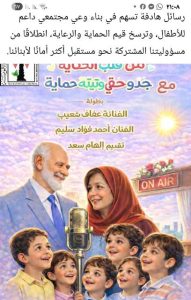 قالت ، الاذاعية الهام سعد ، إنها و فريق العمل سعداء بالمسلسل الإذاعي «من قلب الحكاية.. جدو حقي وتيته حماية» ، و الذي يذاع عبر إذاعة مصر الأم ” البرنامح العام ، كونه يحمل رسالة توعية ، حول دور المجلس القومي للطفولة والأمومة في دعم الأطفال و تعزيز الأمان المجتمعي .