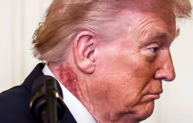 كشف البيت الأبيض الأمريكي، عن سبب ظهور بقعة حمراء كبيرة على رقبة دونالد ترامب .
