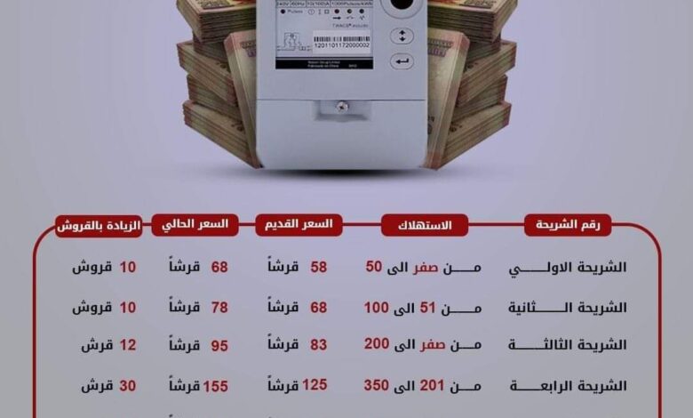 وفقًا للتعديلات الجديدة، فإن أسعار الكهرباء المنزلية أصبحت كالتالي:
