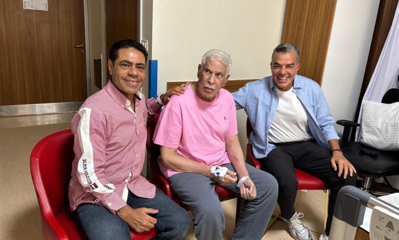 وأضاف: الوالد يعاني من فيروس أو بكتيريا في المعدة، وحالته مستقرة وبيتلقى العلاج اللازم، مطمئنًا الجماهير على وضعه الصحي.
