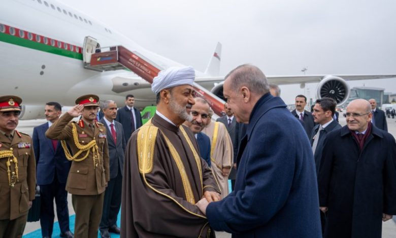 وأشاد السُّلطان هيثم بن طارق سلطان عُمان ـ خلال زيارته إلى تركيا بمواقفها الداعمة للقضايا العربيَّة والإقليميَّة، والتأكيد على عمق العلاقات الأخويَّة التي تجمع البلدين وحرصهما على تعزيز التعاون في مختلف المجالات ذات الاهتمام المشترك، خاصة في المجالات السياسيَّة والاقتصاديَّة والعسكريَّة والدفاعيَّة، بالإضافة إلى العلوم والتكنولوجيا، والتعليم، والثقافة، والطاقة، والسياحة.