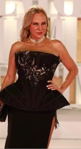 ونجحت في خطف الأضواء، مؤكدة على ذوقها الرفيع حيث تألقت بفستان قصير فوق الركبة، كسر المألوف عن فساتين السجادة الحمراء التقليدية.